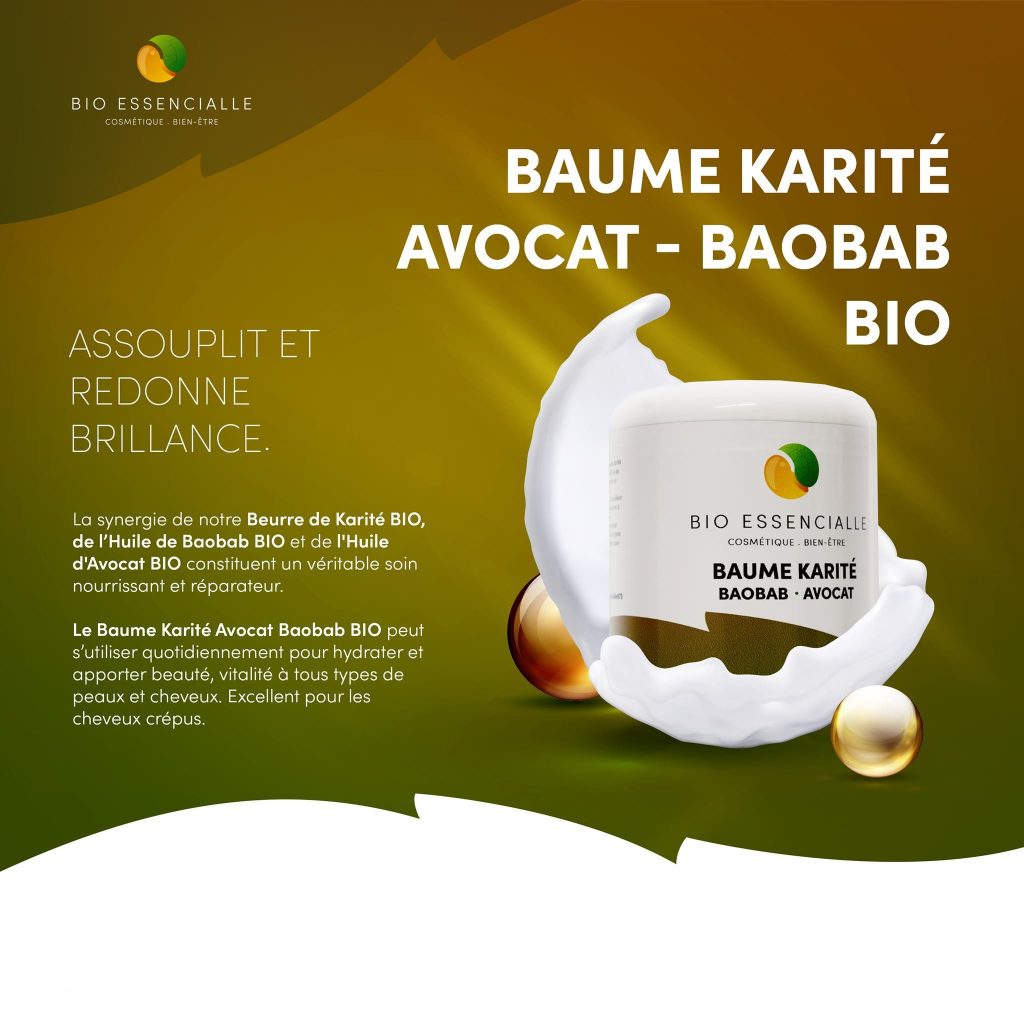Le Baume Karité Avocat Baobab BIO peut s’utiliser quotidiennement pour hydrater et apporter beauté, vitalité à tous types de peaux et cheveux. Excellent pour les cheveux crépus.