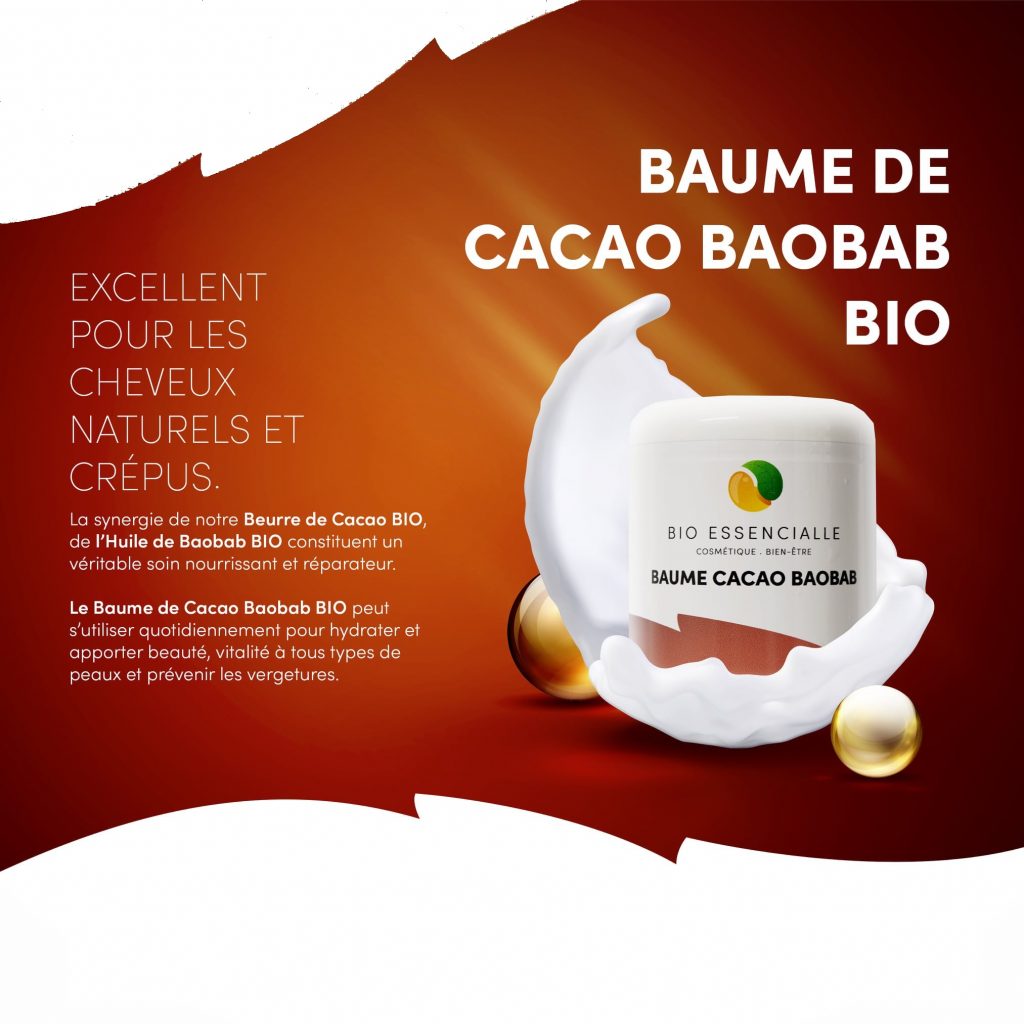 La synergie de notre Beurre de Cacao BIO, de l’Huile de Baobab BIO constituent un véritable soin nourrissant et réparateur.