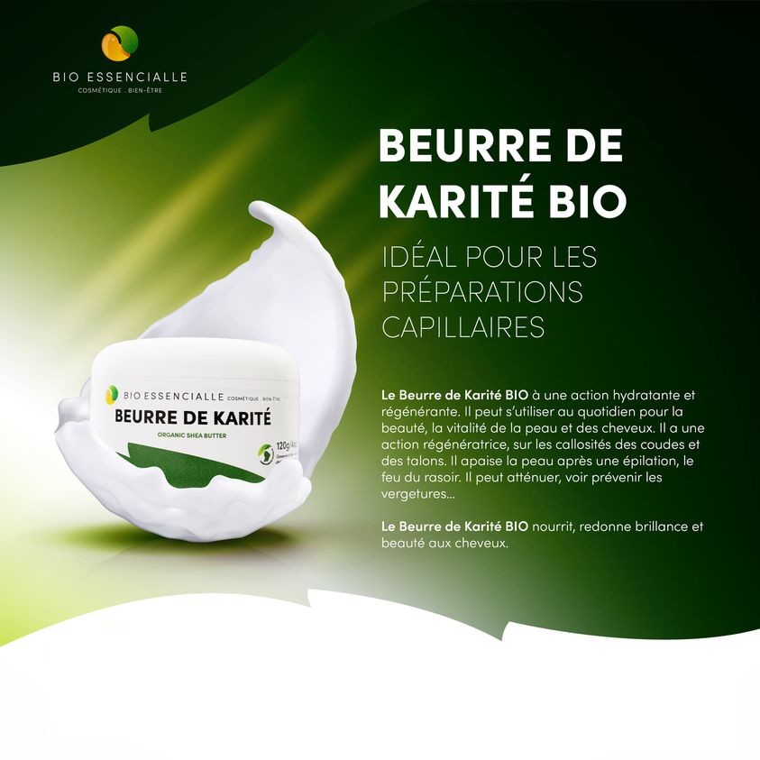 Le Beurre de Karité BIO à une action hydratante et régénérante. Il peut s’utiliser au quotidien pour la beauté, la vitalité de la peau et des cheveux. Il a une action régénératrice, sur les callosités des coudes et des talons. Il apaise la peau après une épilation, le feu du rasoir. Il peut atténuer, voir prévenir les vergetures…